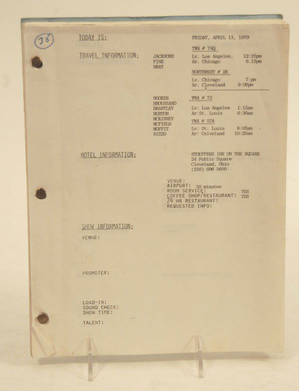 Jacksons Tour Itinerary, 1979