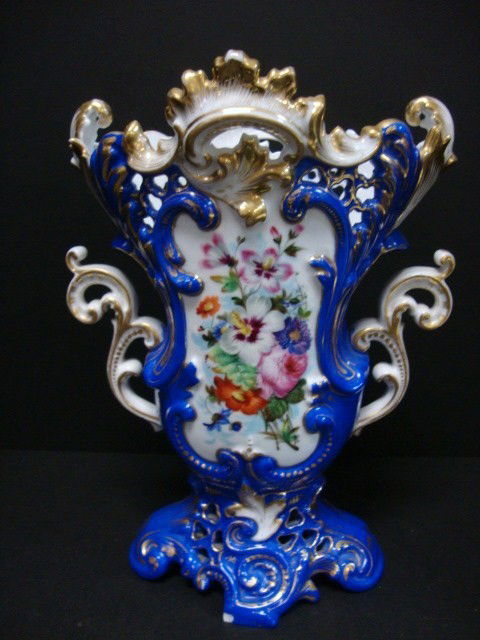 SoldAntique Jacob Petit Porcelain VaseDESCRIPTION: An antique Jacob Petit, porcelain vase. Features an overall scrolled Rococo design. The feet are designed with scrolled rococo floral and shell motifs, centered by a scrolled cartouche wiSee Sold Price