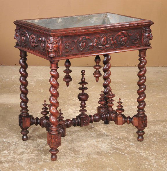 Jacobean oak rectangular shaped planter with carve
