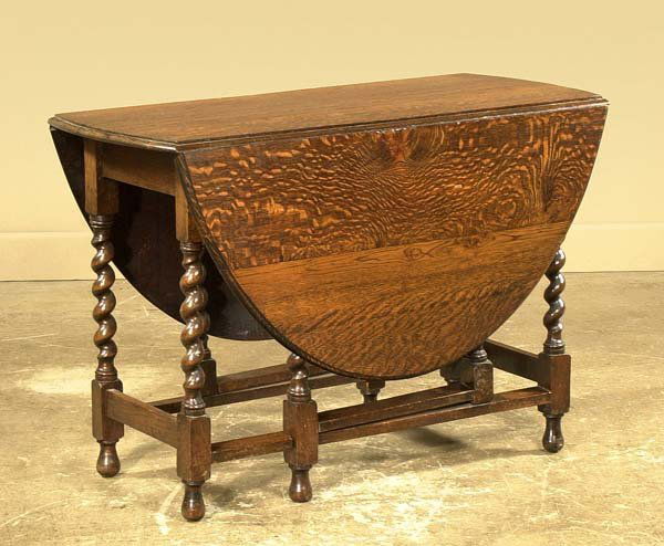 Jacobean style oak drop leaf table with oval shap