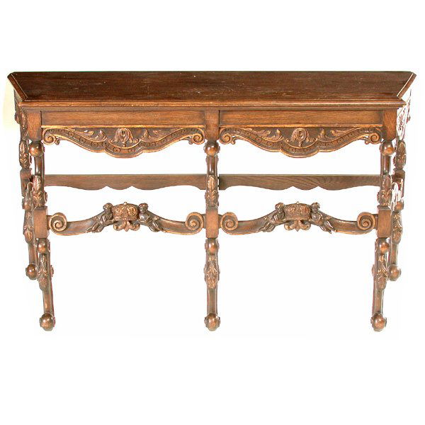 LOUIS XV STYLE CARVED OAK WALL-MOUNTED CONSOLE TABLE5 days LeftAn Italian Baroque oak table6 days LeftSouth Cone Jacobean Style Oak Console TableFeb 27, 2026EARLY 19TH C. ENGLISH OAK DRESSING TABLE.Feb 25, 2026An oak dresser base, 18th century and later,Jacobean Style Vintage English Oak Drop Leaf Dining TableFeb 24, 2026French Provincial Style Carved Oak Writing Table4 days LeftAn oak six-leg refectory table Late 17th century and later, the top is looseAn English William and Mary oak work table, late 18th century6 days LeftA GEORGE I OAK CONSOLE TABLE CIRCA 1715, POSSIBLY REDUCED IN DEPTH3 days LeftFRENCH HENRI II STYLE CARVED OAK WRITING OR LIBRARY TABLEFeb 22, 2026Carved French Rococo Foyer TableFeb 22, 2026VICTORIAN CONSOLE SERVING TABLEFeb 22, 2026ENGLISH CARVED OAK PEDESTAL DESKMar 07, 2026Jonathan Charles Tudor Oak Console Table Natural Light FinishFeb 24, 2026Mid-19th Century Spanish Baroque Oak Console with Marble Top5 days Left