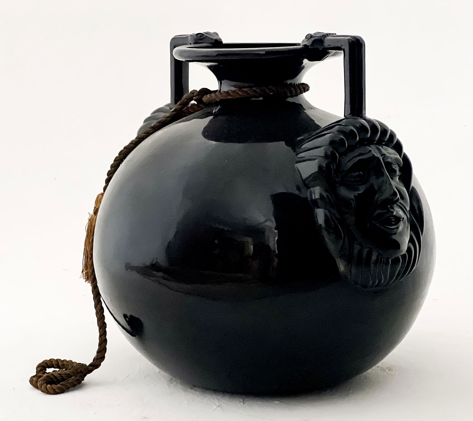 Studio Art Pottery Jug with Glazed Neck and Handle