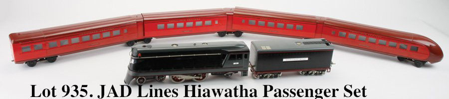 SoldRoberts Lines Standard Gauge Hiawatha SetRe-issued. Engine, tender, and 3 passenger cars. Vestibules included.See Sold Price