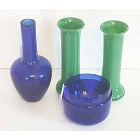 Jade and cobalt glass table articles