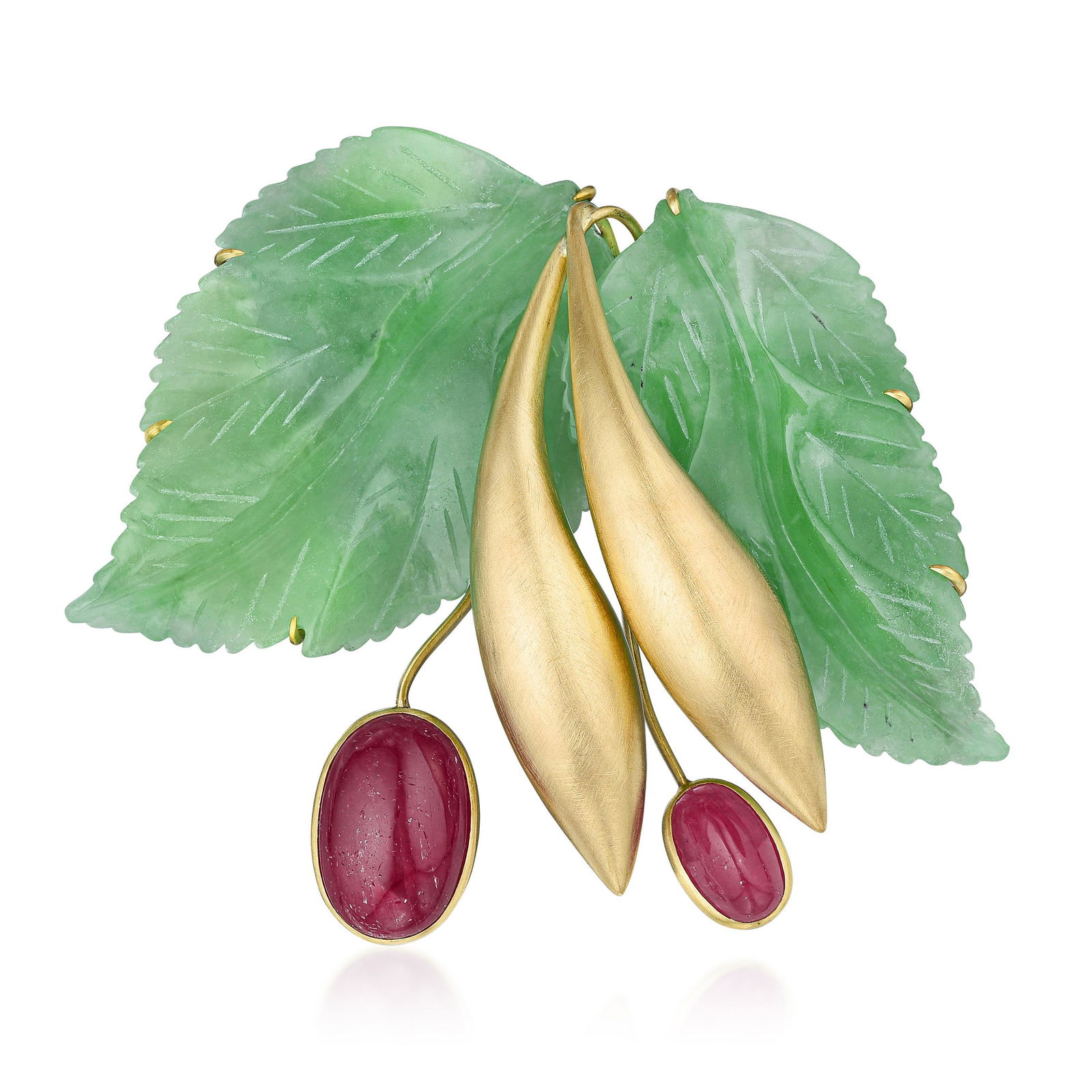 Jade and Ruby Leaf Pin