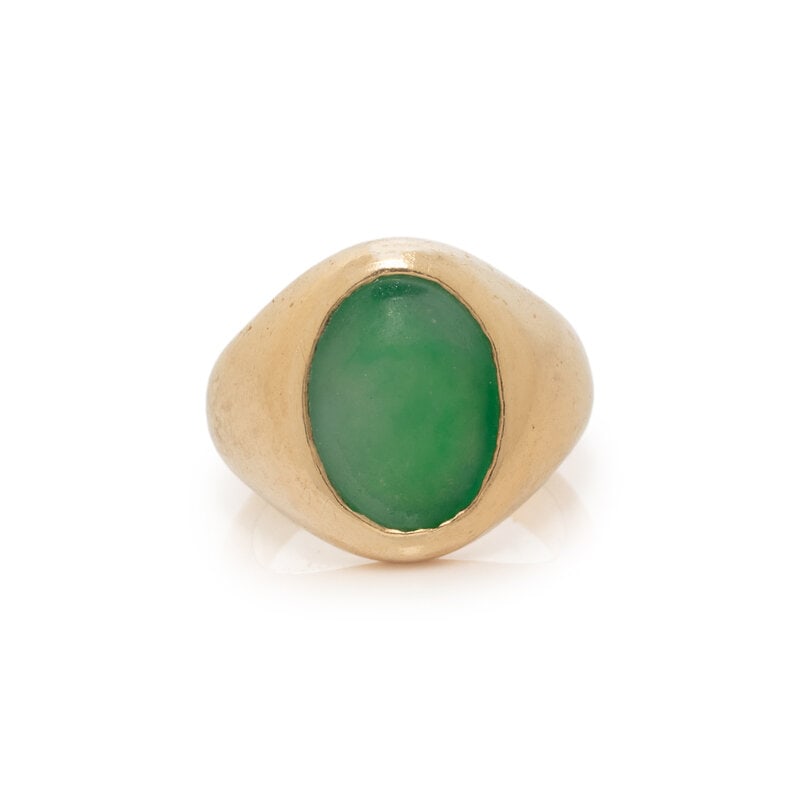 Vintage 10k Yellow Gold Bezel Solitaire Ring with Dark Jade Cabochon