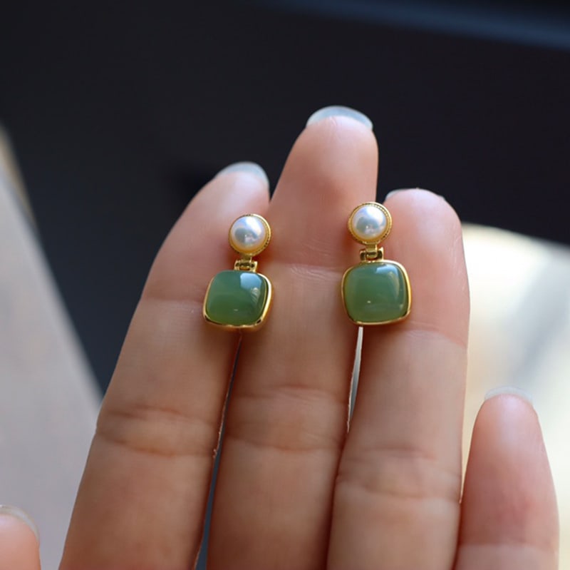 14k Gold 6.2 Ct Natural Emerald & Diamond Earrings