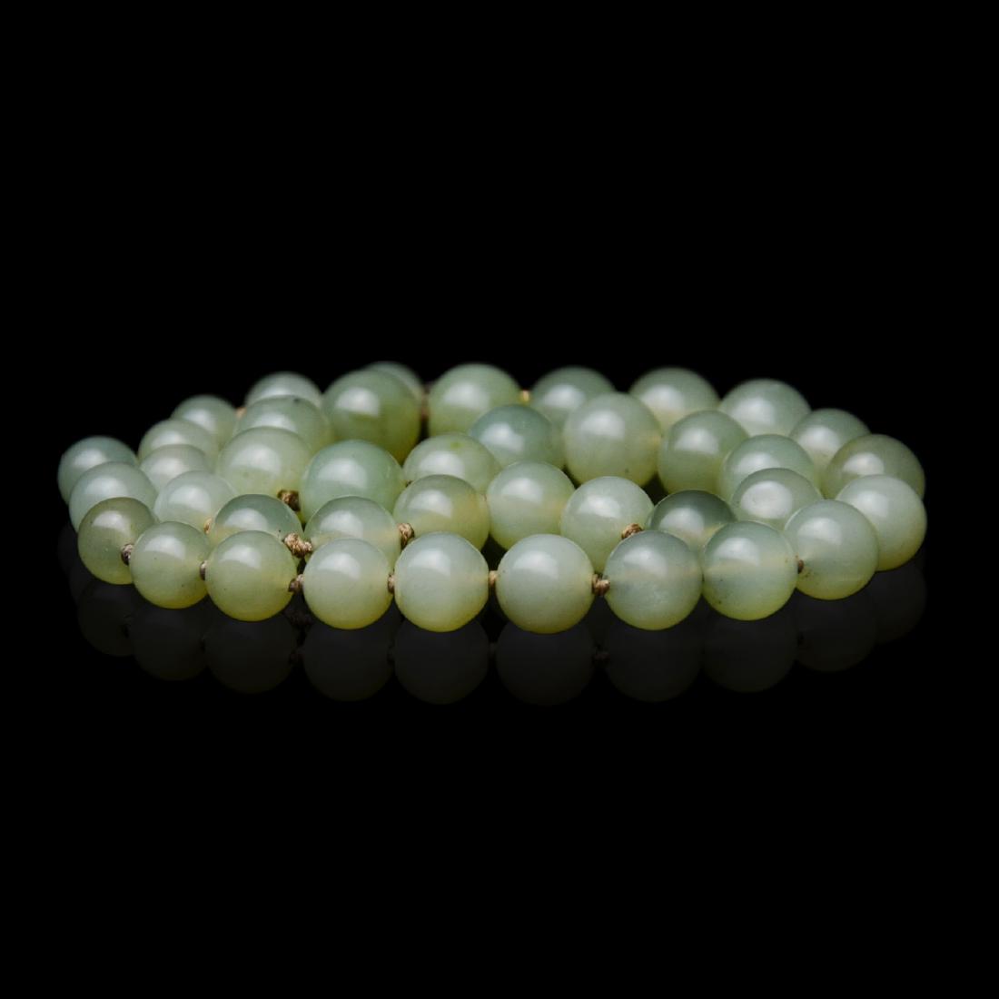 SoldJade Bead Necklace, 40 Beads纯岫岩玉珠链40粒 Jade Bead Necklace, 40 Beads Length: 20 in (50.8 cm) Weight: 74 gSee Sold Price