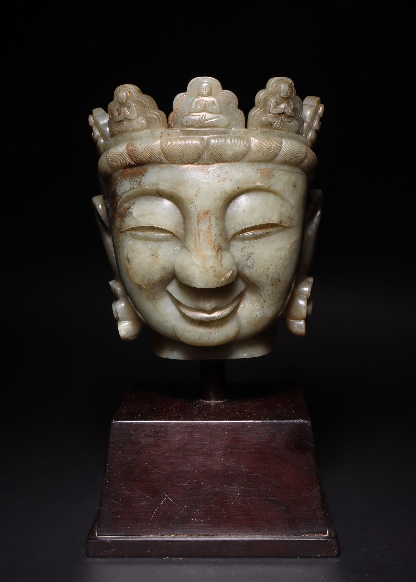 A HETIAN JADE CARVED BUDDHA HEAD