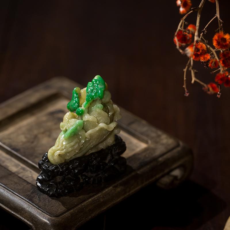 Jade cabbage ornament (mahogany stand)