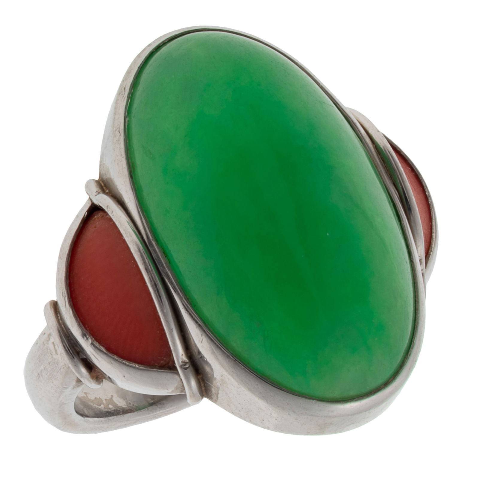 Jade, Coral, Platinum Ring