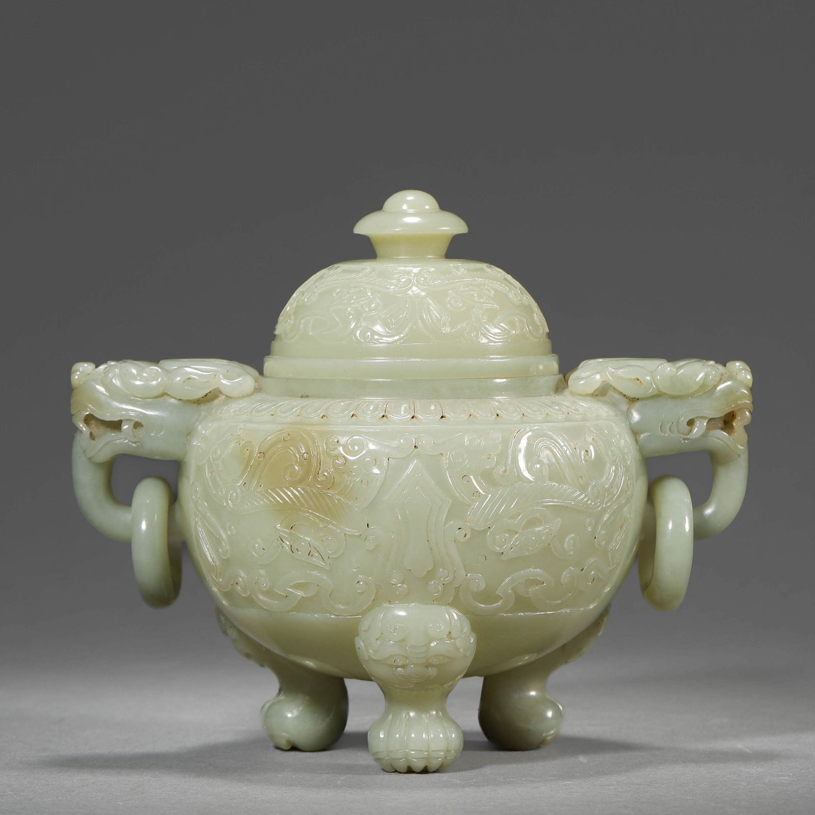 A HETIAN JADE TRIPOD CENSER WITH BEAST-MASK DECORATION AND LOOP HANDLESTop Notch Collections4.5(56)$1,8004 days Left