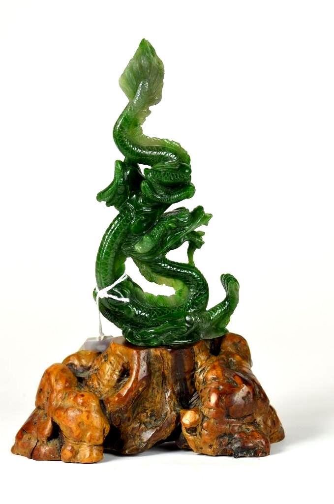 Jade Dragon On Wood Stand