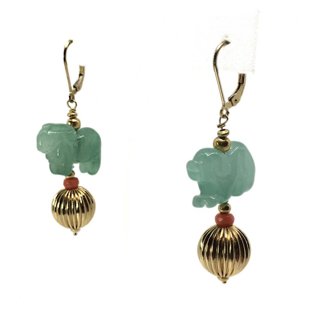 Sold14K Gold Jade Drop EarringsMETAL: 14K gold. GEMSTONES: jade. MEASUREMENTS: earrings are 29mm long x 7.8mm at widest point. MARKED: 14K. WEIGHT: 5.0 grams.Gemstones have not been graded for color and clarity, and tested for clarSee Sold Price