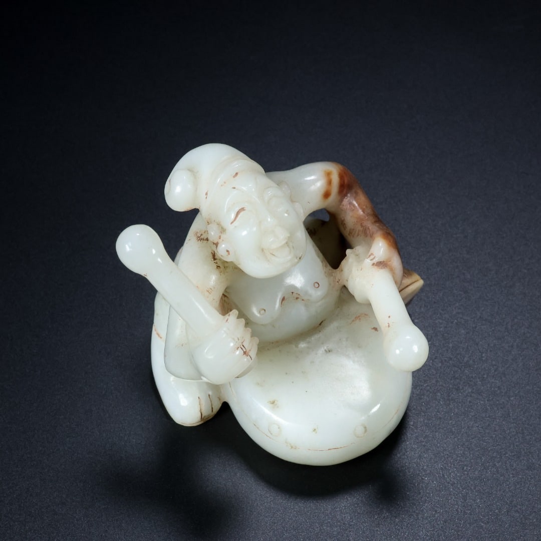 A Qing Dynasty Hetian jade drum boy ornament