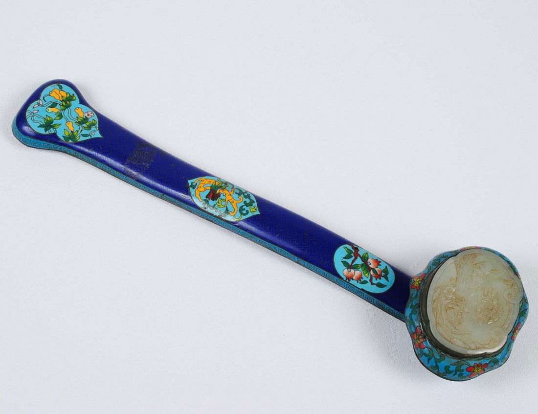JADE MOUNTED CLOISONNE ENAMEL JUI SCEPTER
