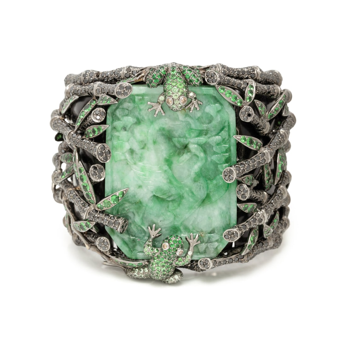 JADE, MULTIGEM, AND BLACKENED GOLD CUFF BRACELET