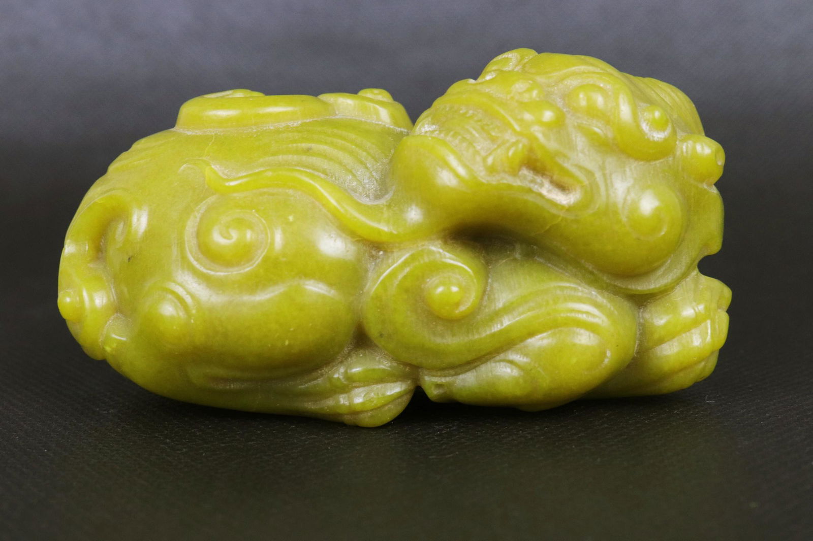 A ANTIQUE JADE CARVING OF AUSPICIOUS BEAST ORNAMENT