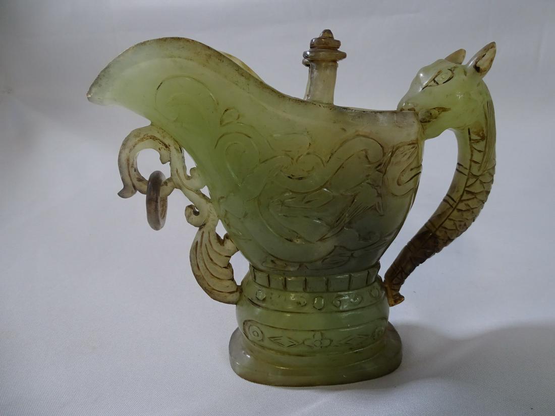 JADE PITCHER WITH DRAGON HANDLE 7" HIGH