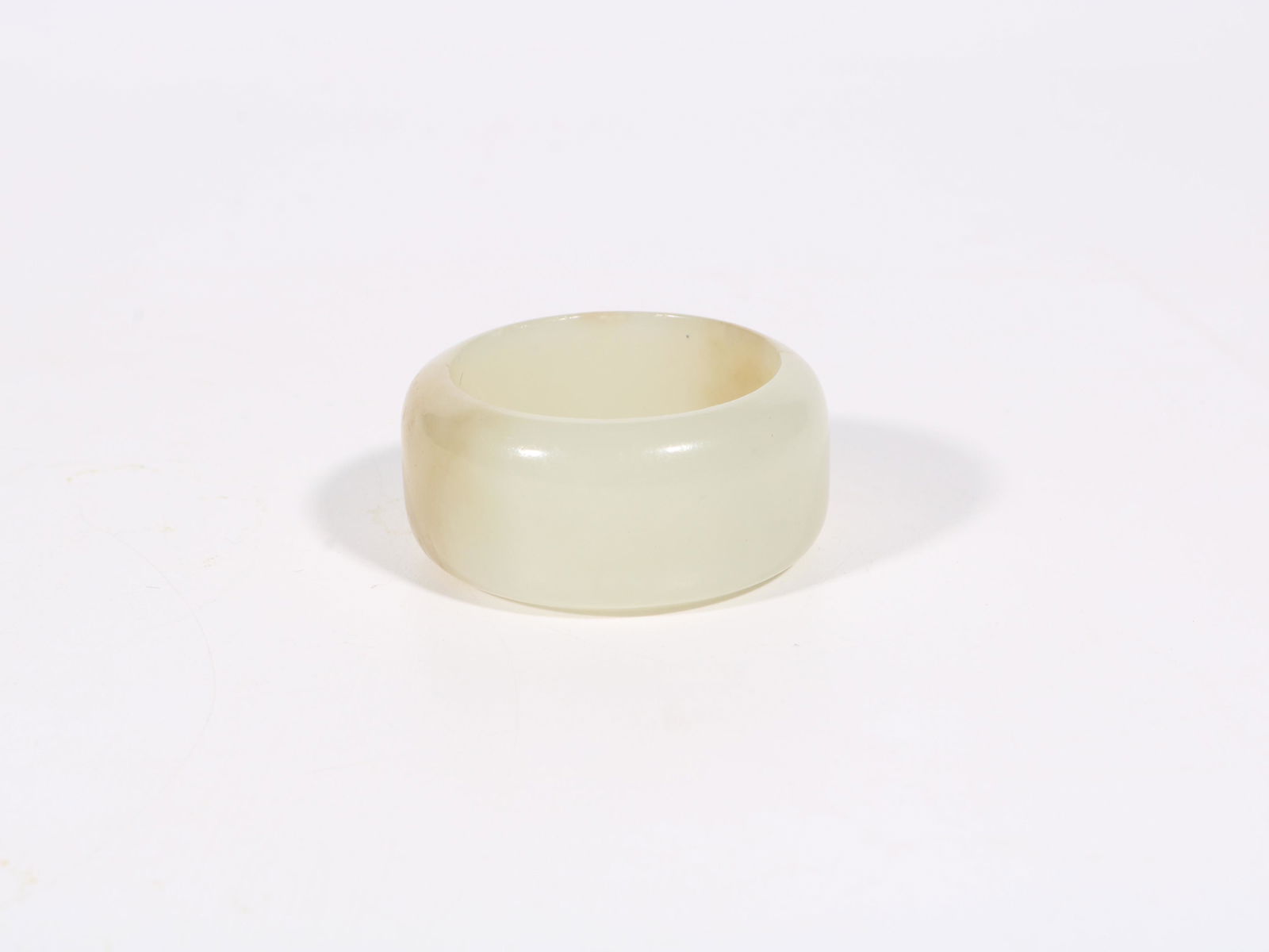 SoldCHINESE HETIAN WRENCHChinese Qing Dynasty Hetian jade wrench (archer's ring), 19th c. 1.5"h x 1.75"diaSee Sold Price
