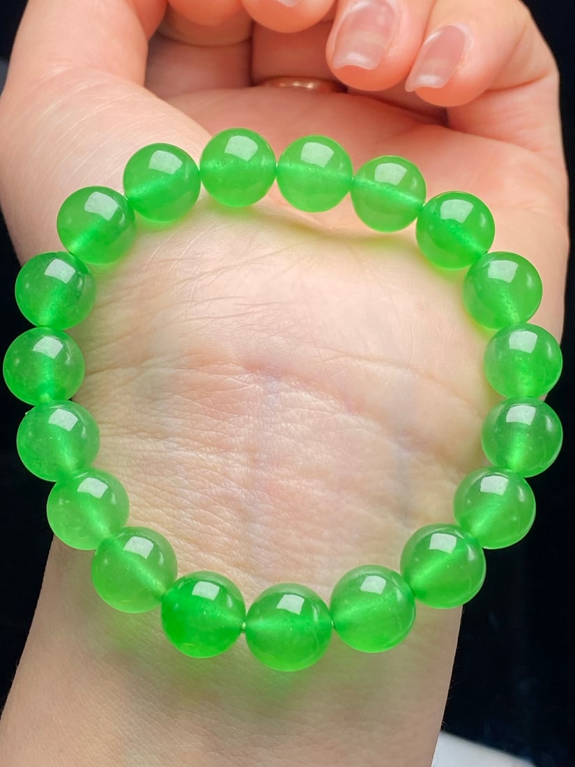 10mm Natural Imperial Green Chalcedony Jade Beaded Bracelet