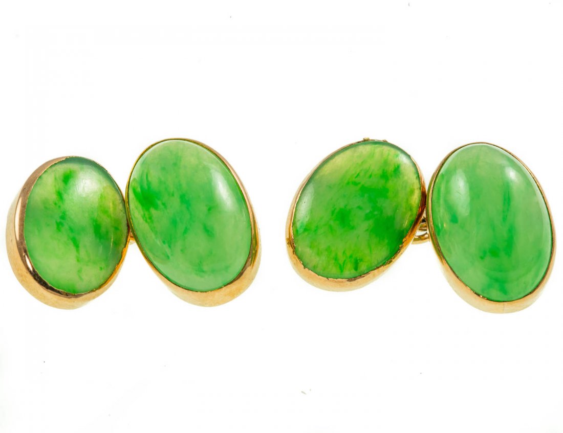 Mid 20th Century 12k Yellow Gold - Natural Green Jade Cabochon Cut: Cufflinks- Set of 2Chairish Auctions4.5(10.3k)$440