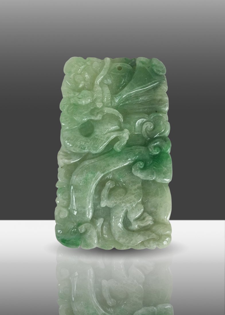 A JADEITE PENDANT WITH SEAWATER DRAGON PATTERN