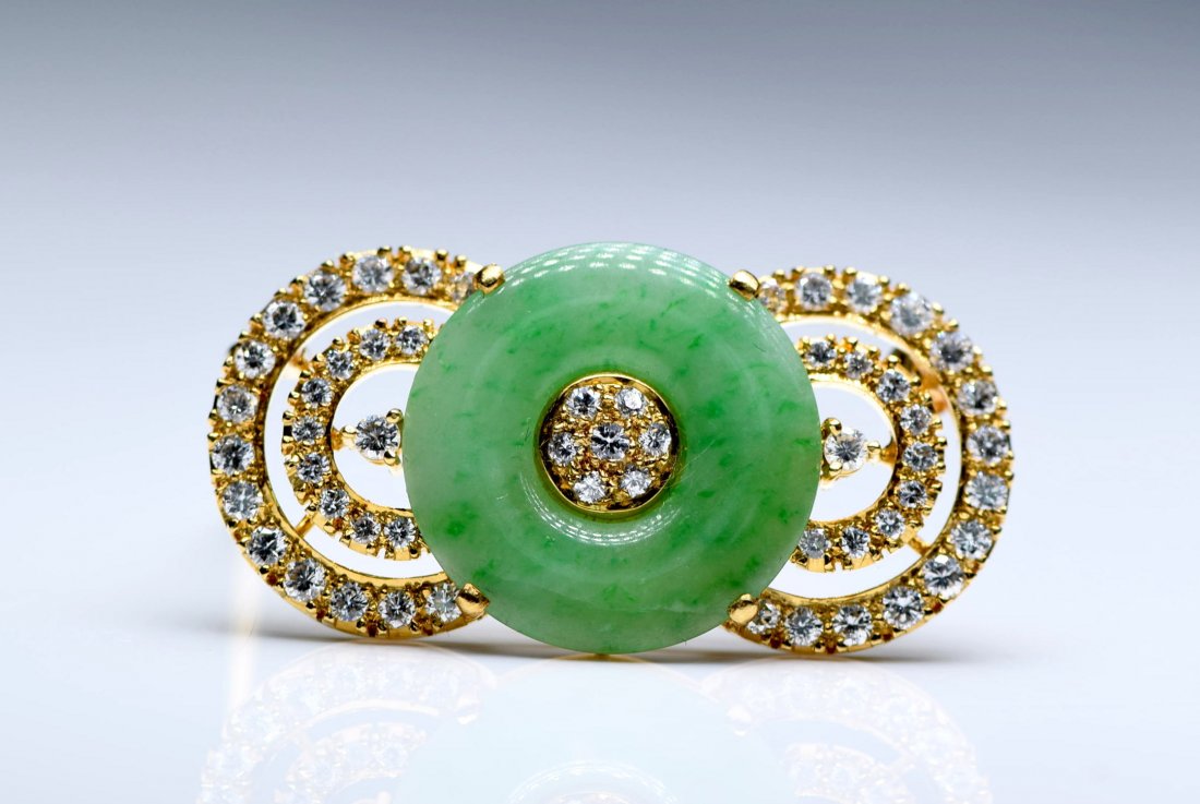 Jadeite Jade 18K YG Brooch.