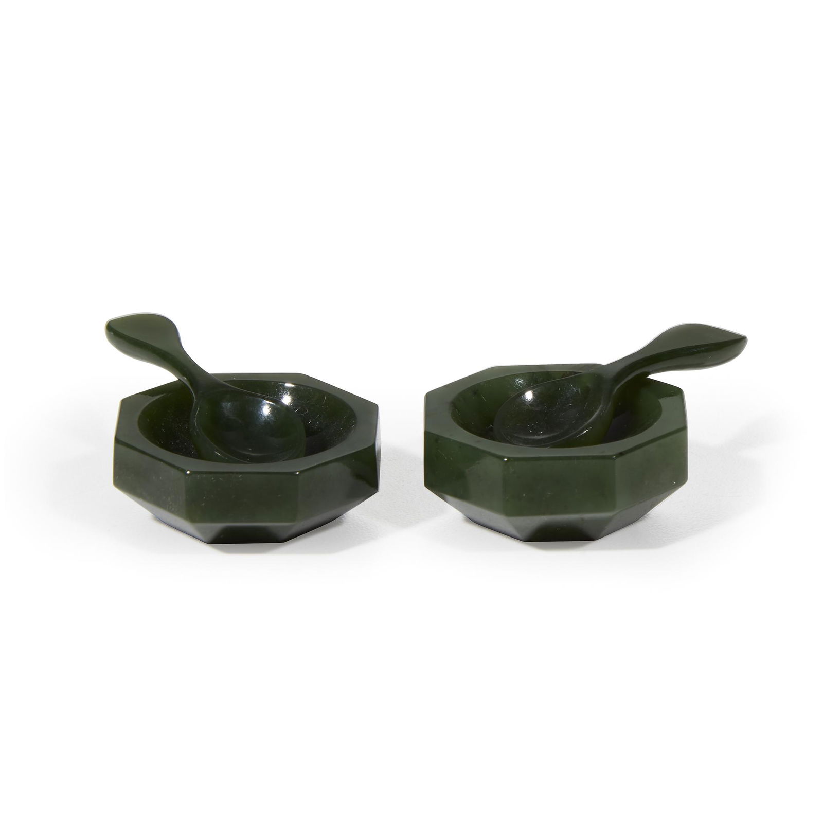 Jadeite salt set in presentation box, 20th century