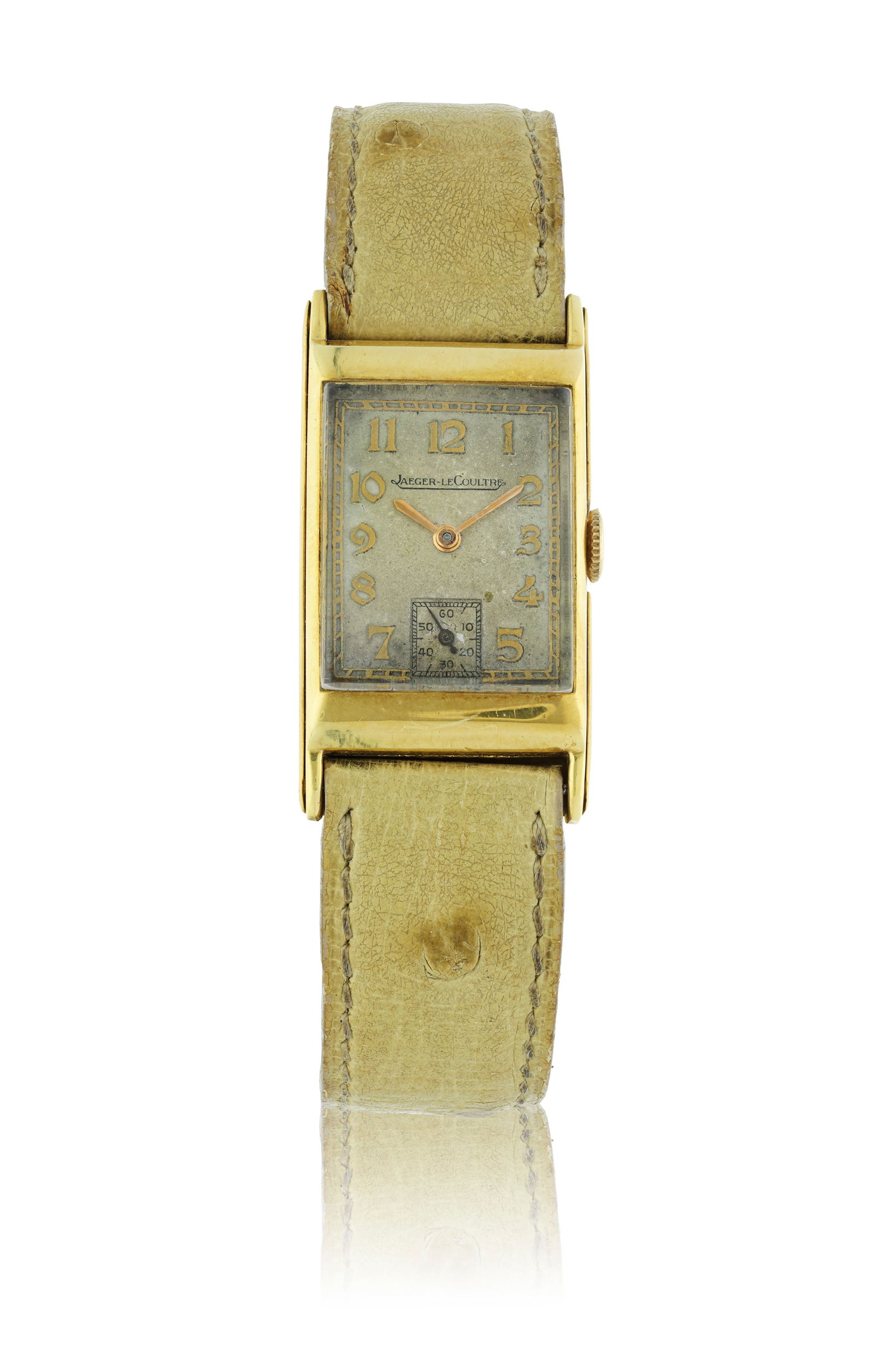 JAEGER LECOULTRE CURVED RECTANGULAR A curved rectangular subsidiary seconds wristwatch, 18K Yello