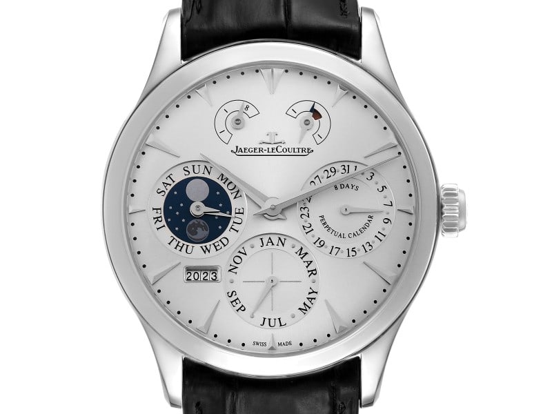 SoldJaeger LeCoultre Master 8 Day Perpetual Calendar Steel Mens WatchJaeger LeCoultre Master 8 Day Perpetual Calendar Steel Mens Watch Product Code: 54600-34CB0 Brand: Jaeger LeCoultre Condition: Pre-Owned Jaeger LeCoultre Master 8 Day Perpetual Calendar Steel Mens WatSee Sold Price