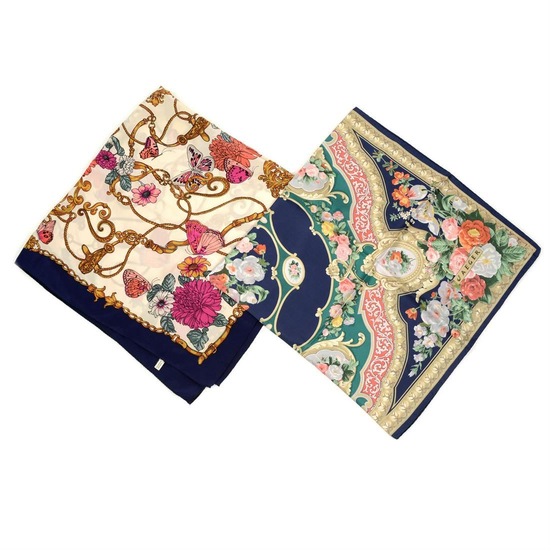 JAEGER - two floral silk scarves.