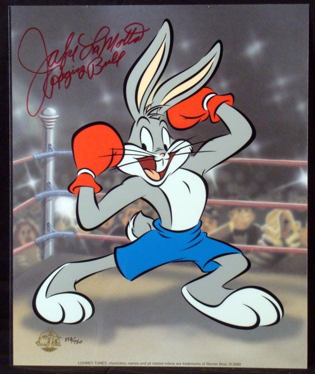 Jake LaMotta Signed Bugs Bunny Boxing Animation Art