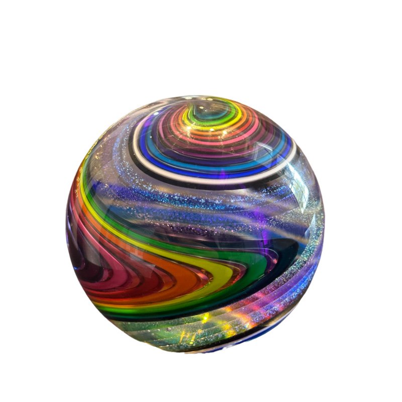 JAMES ALLOWAY, 2018 RAINBOW SWIRLED PAPERWEIGHT,