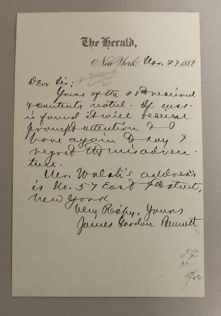 James Gordon Bennett Jr. Autograph