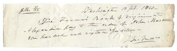 Poinsett, Other Noted Charlestonians Signed LetterMar 07, 2026U.S. Grant War-Dated AES Advising on Plan to Capture Mosby Near Fredericksburg, Exciting!9 hrs LeftJames Buchanan ALS on Niece Harriet's Honeymoon to Cuba9 hrs LeftAndrew Jackson ALS as Pres. to Washington Mayor Van Ness9 hrs LeftGeo. Washington's Adopted Grandson Renews a Loan!9 hrs LeftAndersonville related 5th Wisconsin ephemeraMar 02, 2026Choctaw Nation Land Record Document, Signed by Orlando Brown, 1850Mar 07, 2026Elisha Burr New York 147th letters GettysburgMar 02, 20261863 Erasmus D. Clark I Co. RI 7th Infantry lettersMar 02, 2026George Washington Clipped Signature. 6 x 2 incheFeb 26, 2026Albert Bean Army of the Potomac LetterMar 02, 2026NY Tribune Writer Ball's Bluff Letter & othersMar 02, 2026General Banks & Landers in Camp Barnes letterMar 02, 2026William Thornton 1817 Washington DC Capital Architect Signed Manuscript Document Richard Bland LeeMar 29, 2026Jefferson Davis Confederate States America letterMar 02, 2026Dr. Mudd, Samuel Arnold, and Ned Spangler letterMar 02, 2026