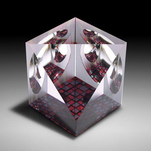 SoldFaceted Art Glass Sculpture by James Shaw, 2006James Shaw Red and Black checkered base glass sculpture Signed James Shaw on the bottom, along with - s#17609 Measurements: H 4 x W 3.75 x D 2.75 inches Condition: Very good See Sold Price