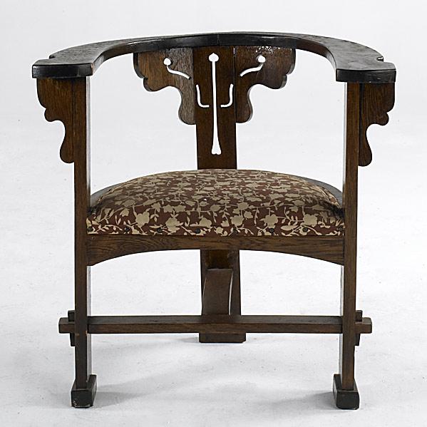 Carved Oak "Throne" Upholstered Chair
