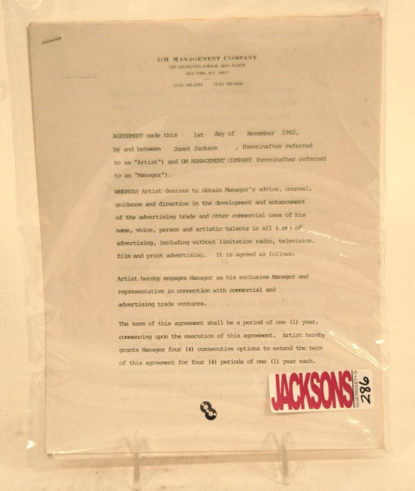 Janet Jackson Signed Management Contract