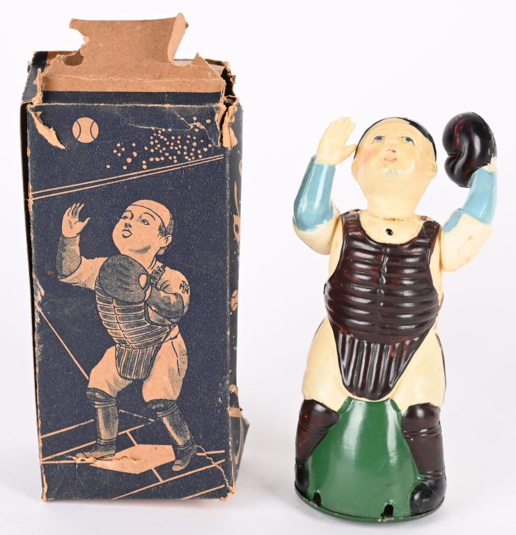 JAPAN CELLULOID WINDUP BASEBALL CATCHER w/ BOX