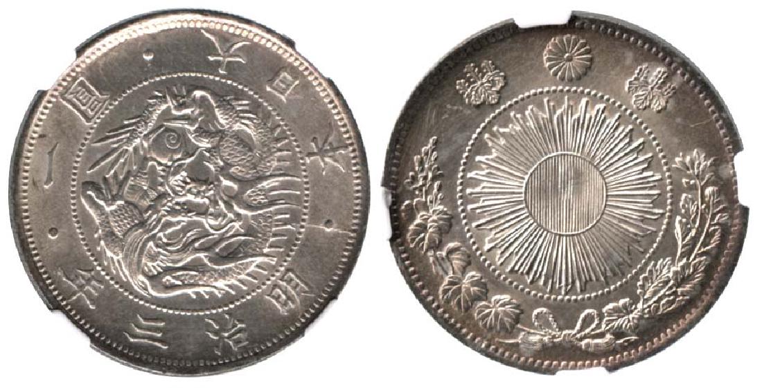 Group Lot of Three Chinese Silver Style CoinsFeb 19, 2026Japan Meiji Era Chopmarked Trading 1 Yen Silver Coin 1887 N135906Feb 22, 20261905 (Year 38) Japan Silver 1 Yen CLOSELY UNCIRCULATEDFeb 14, 20261905 Japan 10 Sen Silver Coin ANACS MS 64 Certified9 hrs Left1886 Japan Meiji one yen chopmarked silver trade dragon dollar Y25.3AMar 01, 20261906 Japan 50 Sen Rising Sun Silver Coin, Meiji 39Mar 01, 20261876 Japan 5 Sen Silver Coin NGC MS 64 Certified3 days Left1986 Japanese 500 Yen Silver Coin3 days LeftJapan. Meiji, Mutsuhito AR 10 Sen.Mar 11, 20261902-P Morgan Silver Dollar NGC MS66 Uncirculated Superb Eye Appeal5 days LeftAntique Chinese Sterling Silver Coin8 hrs Left1909 Japan 50 Sen Silver Coin NGC AU58 Certified Collectible6 days LeftUS 1942-1943 Jefferson Nickel Trio, Silver, KM-192a, NGC MS 67Antique Chinese silver coinFeb 15, 20261923 50 Sen Japan Taisho Silver Coin1887 Morgan Silver Dollar NGC MS65 1961 Treasury CollectionFeb 18, 2026