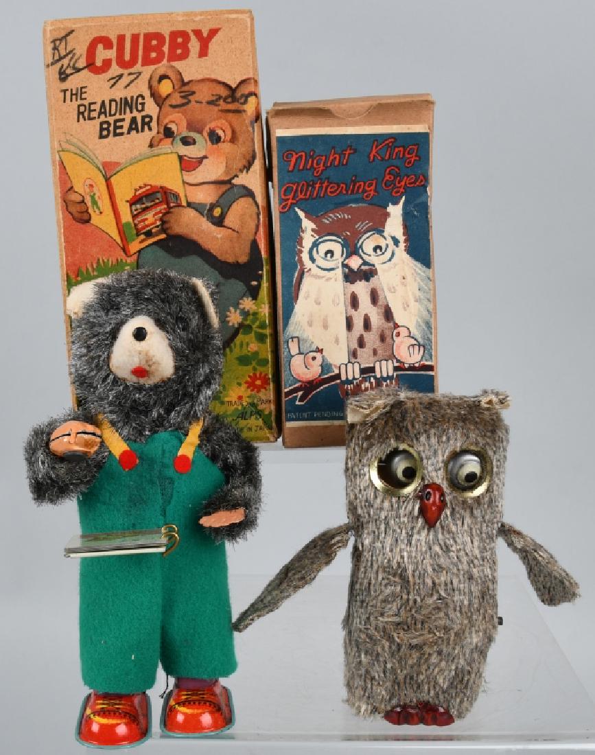 VINTAGE TOY LOTMar 07, 2026ASSORTED JAPANESE VINTAGE MECHANICAL TOYS WITH BOXES, LOT OF TWOMar 05, 2026FOLK ART CARVED WOODEN TAKAAN ANIMAL PAPIER-MACHE MOLDS, LOT OF THREEMar 06, 2026Mighty Joe Young Beast & Polar Bear Bean Bag DollsMar 02, 2026JAPAN BATTERY OP BALL PLAYING BEAR w/ BOXMar 14, 2026JAPAN BATTERY OP SHOOTING BEAR w/ BOXMar 14, 2026JAPAN BATTERY OPERATED PROFESSOR OWL w/ BOXMar 14, 2026JAPAN BATTERY OP BUBBLES WASHING BEAR w/ BOXMar 14, 20264 pcs Vintage Raikes Bears Stuffed Bear Dolls in Original Boxes, incl. 17019 Kevi Bear! See pics.3 pcs Vintage Raikes Bears Stuffed Bear Dolls in Original Boxes, incl. Mother's Day 1990. See pics.JAPAN BATTERY OP FISHING BEARS BANKMar 14, 2026BOXED CELLULOID JAPANESE CIRCUS BEAR6 days LeftJAPAN BATTERY OP FATHER BEAR w/ BOXMar 14, 2026R. John Wright Bear from Teddy and MeFeb 28, 2026BOXED YONEZAWA BEAR THE MAGICIAN6 days LeftVintage Mechanical Toys and Tin Litho Tank Bank (3)Mar 07, 2026