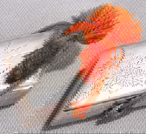 +ASIAN: Silver box and pair of open salts, including: Japanese Silver box, Meji period, with iris an+ASIAN: Silver box and pair of open salts, including: Japanese silver box, Meji Period, with iris and applied dragon decoration, marked “Konoike zo” (made by Konoike) and “junginR