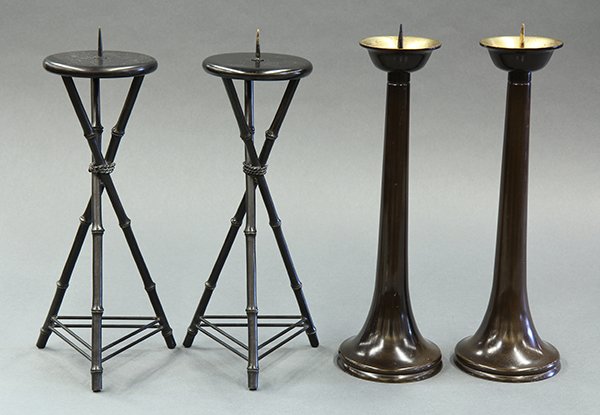 A pair of brass bell candlesticks together with a pair of turned wood and brass candlesticks Pro...Bonhams4(380)£50(3 bids)