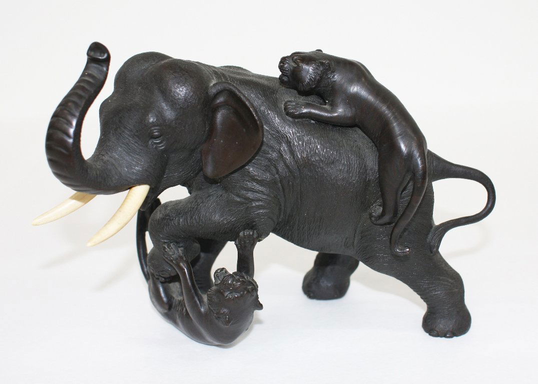 A Lot of 3 Large 19th C. Japanese Elephant Fighting Tigers Bronze Group Sculptures, Signed2 days LeftGenryusai Seiya Japanese Bronze Sculpture Elephant & Tiger Meiji per SignedMar 15, 2026Chinese Bronze Sculpture of an ElephantMar 14, 2026Vintage Japanese Bronze Tiger FigurineFeb 28, 2026Japanese bronze buffalo and tiger sculpture.5 days LeftBronze Sculpture "Elephant"Museum Quality H: 7" W: 15" D: 6"Mar 01, 2026A Fine MEIJI Japanese Signed Bronze Tiger SculptureMar 07, 202619th Century Large Japanese Okimono Bronze Tiger SculptureMar 14, 2026JAPANESE BRONZE TIGER W/BASE, 19/20TH C., L. 29"2 days LeftLarge Continental Figural Bronze Elephant Statue1 day Leftafter OMORI MITSUMOTO (Japanese) "Tiger," JAPANESE, 20TH CENTURY,2 days LeftStanding Elephant Patinated Bronze SculptureMay 07, 2026SIGNED JAPANESE MEIJI BRONZE ELEPHANT OKIMONO3 days LeftMother & Baby Elephant Bronze SculptureMar 06, 2026Thai Figures Atop Elephant Metal SculptureMay 07, 202619th Century Japanese Okimono Bronze Tiger SculptureMar 14, 2026