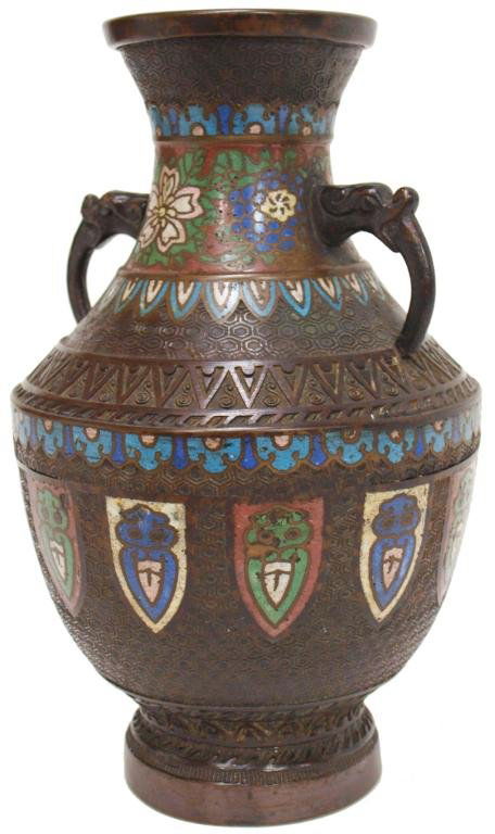 Sold20th C. Japanese Champleve Bronze Handled UrnMeasures approx. 12" Tall. From a Palm Beach estate. Local Pick Up or Third Party Shipping Required.See Sold Price