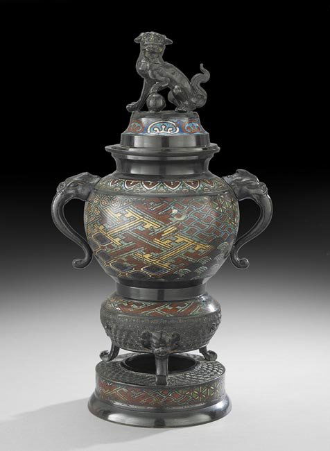 Large Japanese Cloisonne Covered Vase,Meiji PeriodMar 31, 2026Large Japanese Cloisonne Vase, Meiji PeriodMar 31, 2026Japanese, Large and Impressive Satsuma covered urnMar 26, 2026Large Chinese Cloisonne 2 Handle CenserMar 28, 2026A Chinese Cloisonné Enameled Vase Inset with Em7 days LeftA Large Chinese Cloisonne Enamel Censer and Cover Republic Period7 days LeftA Qing Dynasty copper tire cloisonn é enamel animal face pattern Liang ZhenApr 18, 2026A Qing Dynasty copper gilt cloisonn é enamel colored phoenix ear vaseApr 18, 2026A copper-gilt cloisonn é inlaid jade incense burner from the Qing DynastyApr 18, 2026A pair of cloisonné lion earring amphora from the Qing DynastyApr 04, 2026A Exquisite Gilt Bronze Cloisonne Deer Head VaseApr 16, 2026A CHINESE CLOISONNÉ ENAMEL VASE WITH GILT-BRONZE DRAGON HANDLESMar 26, 2026A Huge Cloisonne Eight Treasures Pattern Phoenix-Ears CenserApr 06, 2026A Gorgeous Cloisonne 'Bird& Flower' Beast-Handled Vase3 days LeftAn Exquisite Cloisonne Inlaid Painted Enamel Figure Pattern Gourd-Shaped Ewer3 days LeftA Rare Cloisonne Lotus and Dragon and Phoenix Pattern Double-Ears VaseApr 06, 2026