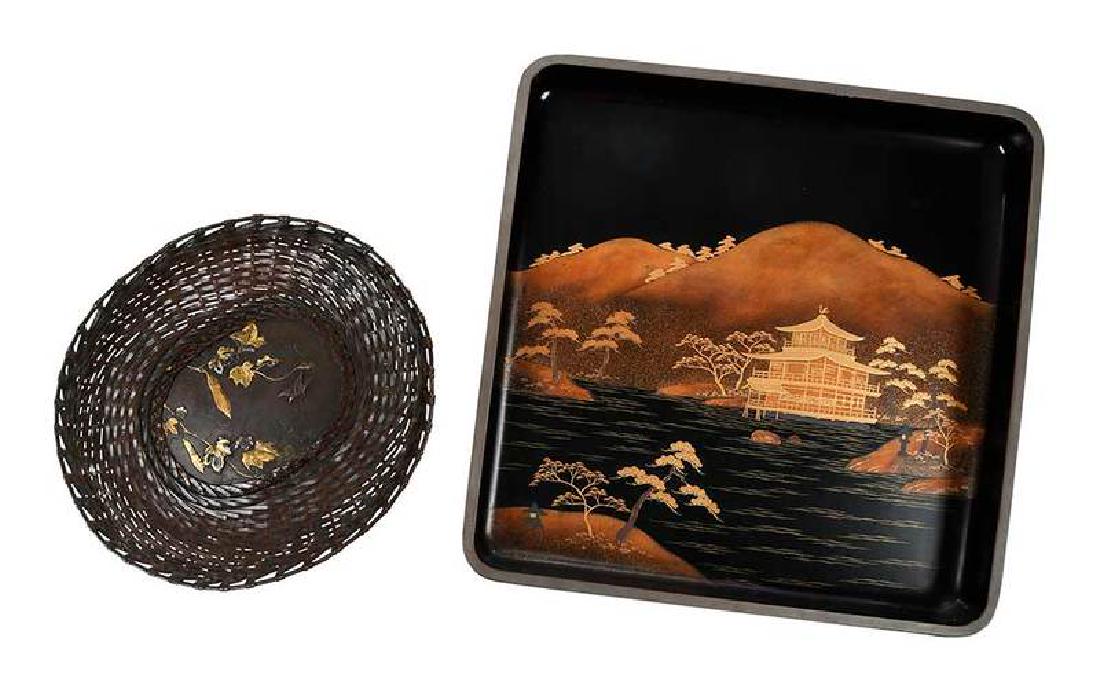 Japanese Copper Basket with Lacquer Tray