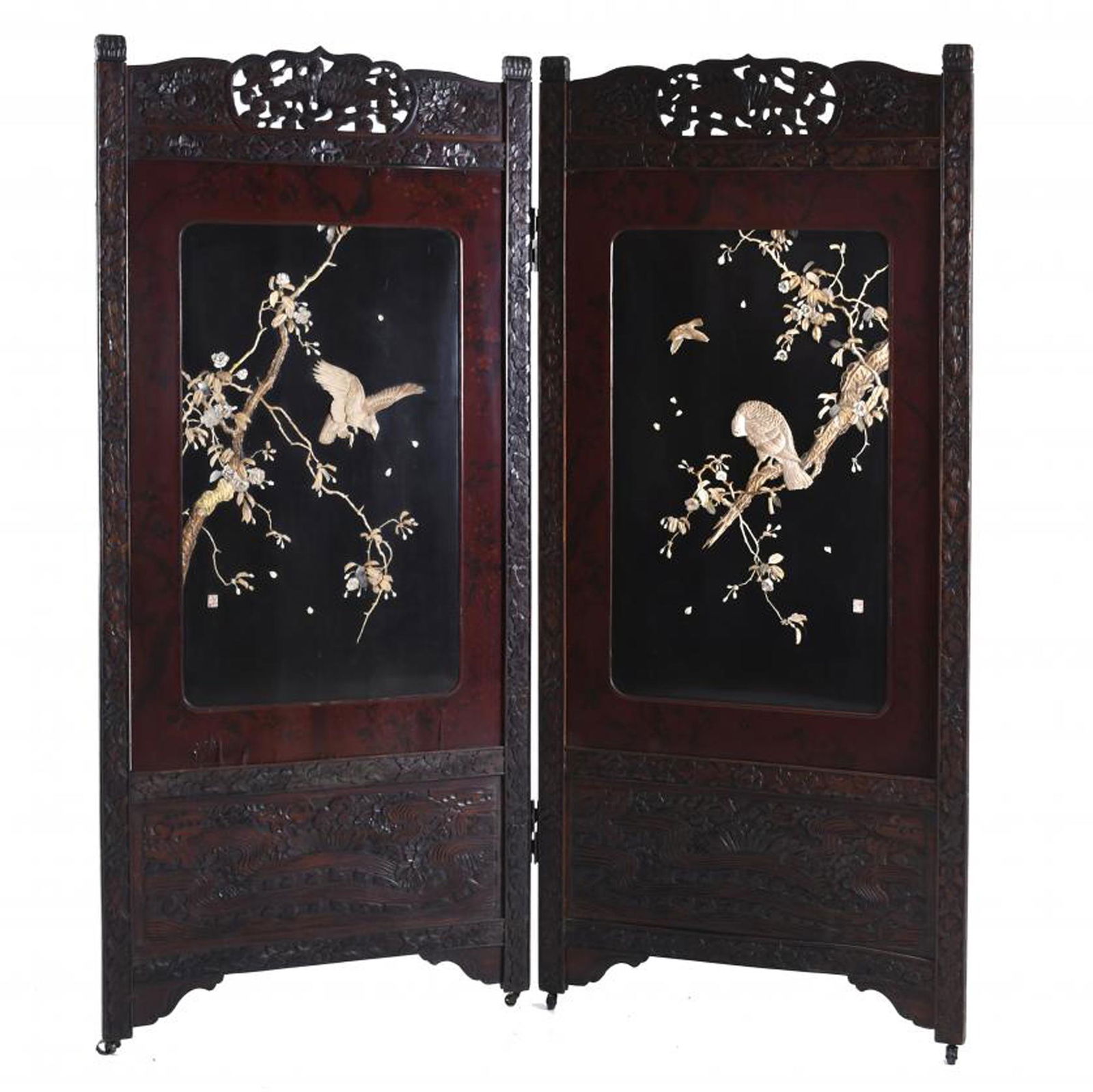 CHINESE ROSEWOOD DISPLAY CABINETApr 09, 202619th Century Chinese Hand Carved Ornate Two Panel Screen5 days LeftChinese Four Porcelain Insert Panel Floor Screen19 hrs LeftA Large Chinese Huanghuali/ rosewood Folding Screen with Mother-of-Pearl Inlay, 4 Panels2 hrs LeftCHINESE 4-FOLD BLACK LACQUERED SCREENApr 09, 2026Chinese Lacquer Screen w Inset Ink on Paper Scenes7 days LeftA Pair of Rare Zitanwood Inlaid Gems Flower and Bird Pattern Cabinets128 Lots AwayShibayama Art, Meiji Era, Ebonized Wood, Lacquer, Two Panel Screen, Japan, 1890sApr 30, 2026JAPANESE LACQUERED & INLAID EAGLES 2-PANEL FLOOR SCREEN, 71.5"HMar 29, 2026Chinese Ornately Carved Wood ScreenMar 31, 2026An exquisite zitanwood cabinet inlaid with gems and patterns of fortune, wealth, longevity and7 days LeftTeak Hand Carved Floral and Foliage Pattern Three-Panel Screen20 hrs LeftChinese Carved Folding ScreenMar 31, 2026Japanese antique room divider w/ bone overlayMar 30, 20261875 Chinese Red Intricate Wooden Carved Door Panels in Gold Color Accent, a Pair1875 Chinese Red Intricate Wooden Carved Door Panels in Gold, a Pair