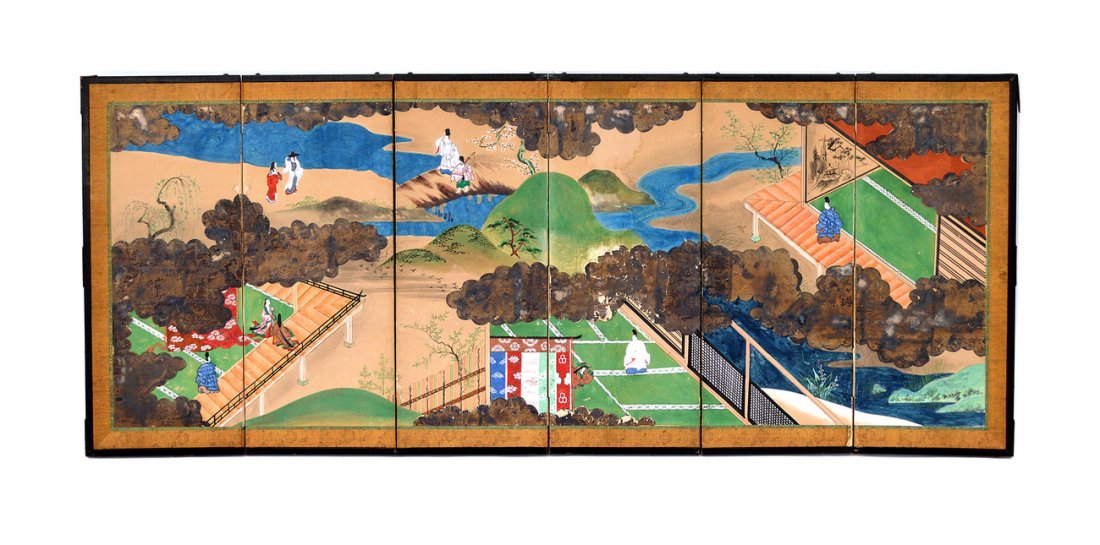 A six-fold Japanese table screen, 19th-20th centuryFour-fold screen, Japanese painting, gold powder painted on Japanese paper2 hrs Left19th C. Chinese Six Panel Table Screen11 hrs LeftJAPANESE PAINTED PAPER SIX-FOLD FLOOR SCREEN Meiji period - Each panel, H: 56 in., W: 20 in..6 days LeftC. 1900-1920s Meiji to Taisho Era Japanese Small 6-Panel Byobu Screen"Snow Scene Tower" Japanese paintingMar 04, 2026Four-fold screen style, Japanese painting, gold leaf, autumn grassMar 04, 2026Four-fold screen, willow tree and heron2 hrs LeftFour-fold screen, Japanese painting, gold leaf coloring, cherry blossom viewing2 hrs LeftA silk flower and bird screen of Lü Ji in the Ming Dynasty6 hrs LeftJAPANESE FOLDING SCREEN PAINTING ON SILK, 35.5IN x 70IN (90cm x 178cm)Feb 17, 2026Qiu Ying (1494-1552), attributed to, Romance of the Western Chamber (Eight-Panel Screen)2 days Left1950-1960s Chinoiserie Style Painted Silk Screen With Flower Cart96" Tall Vintage Oriental Lacquer ScreenJul 05, 2025Japanese 4 Panel ScreenFeb 13, 20261960s ShÅwa Era Japanese Painted Byobu Silk Screen "Four Seasons"